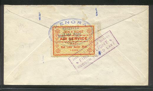 Stamp CL 7 was placed at the back of this cover. Postmarked March 30 1926, at Red Lake.