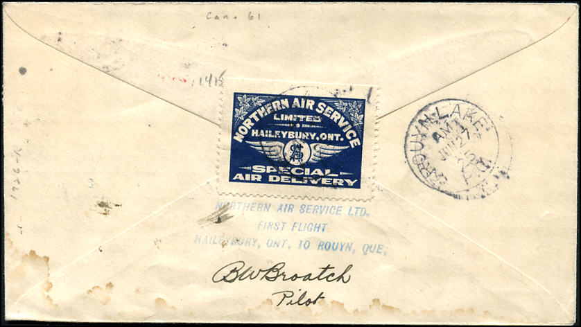 Selected Images of the Envelope (Covers) carried on Air Mail by Aircraft that Serviced Northern Ontario